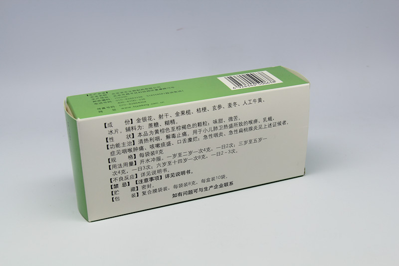 【成 份】金银花、射干、金果榄、桔梗、玄参、麦冬、人工牛黄、冰片。