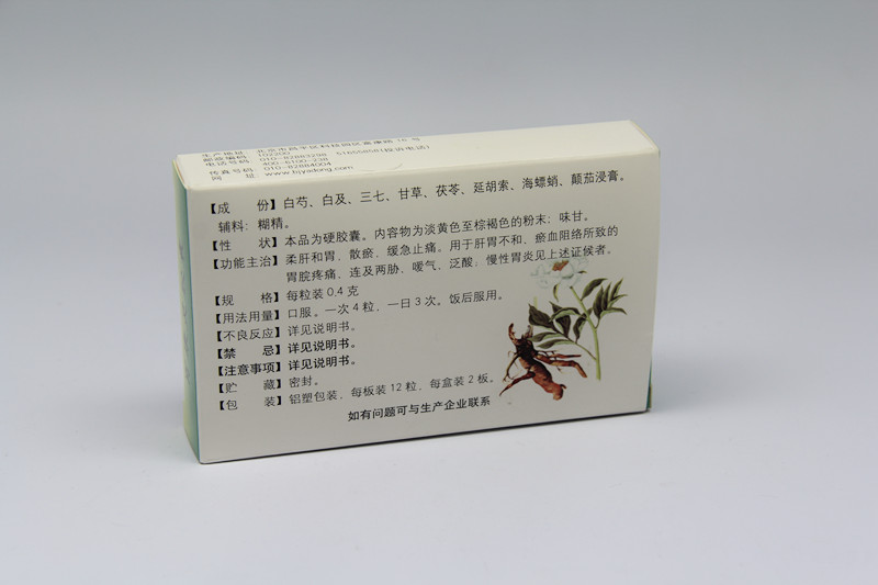 【成 份】白芍、白及、三七、甘草、茯苓、延胡索、海螵蛸、颠茄浸膏。