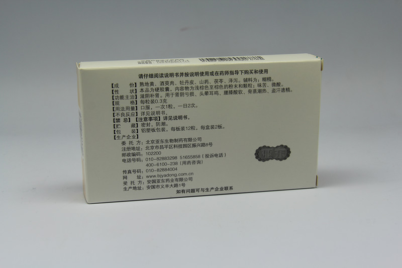 【功能主治】滋阴补肾。用于肾阴亏损、头晕耳鸣、腰膝酸软、骨蒸潮热、盗汗遗精、消渴。